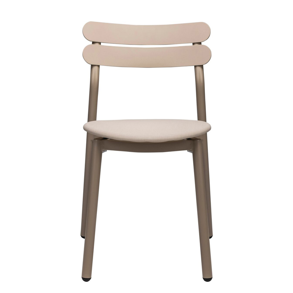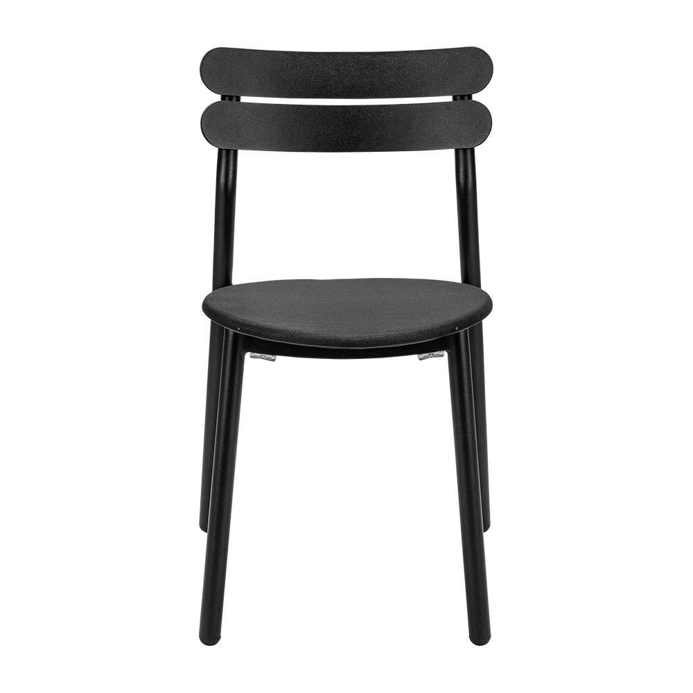 Noto is a compact, aluminium outdoor chair. In this version, the seat is made of batyline. This chair is also available with a seat made of untreated teak slats. The chair is stackable in all versions.